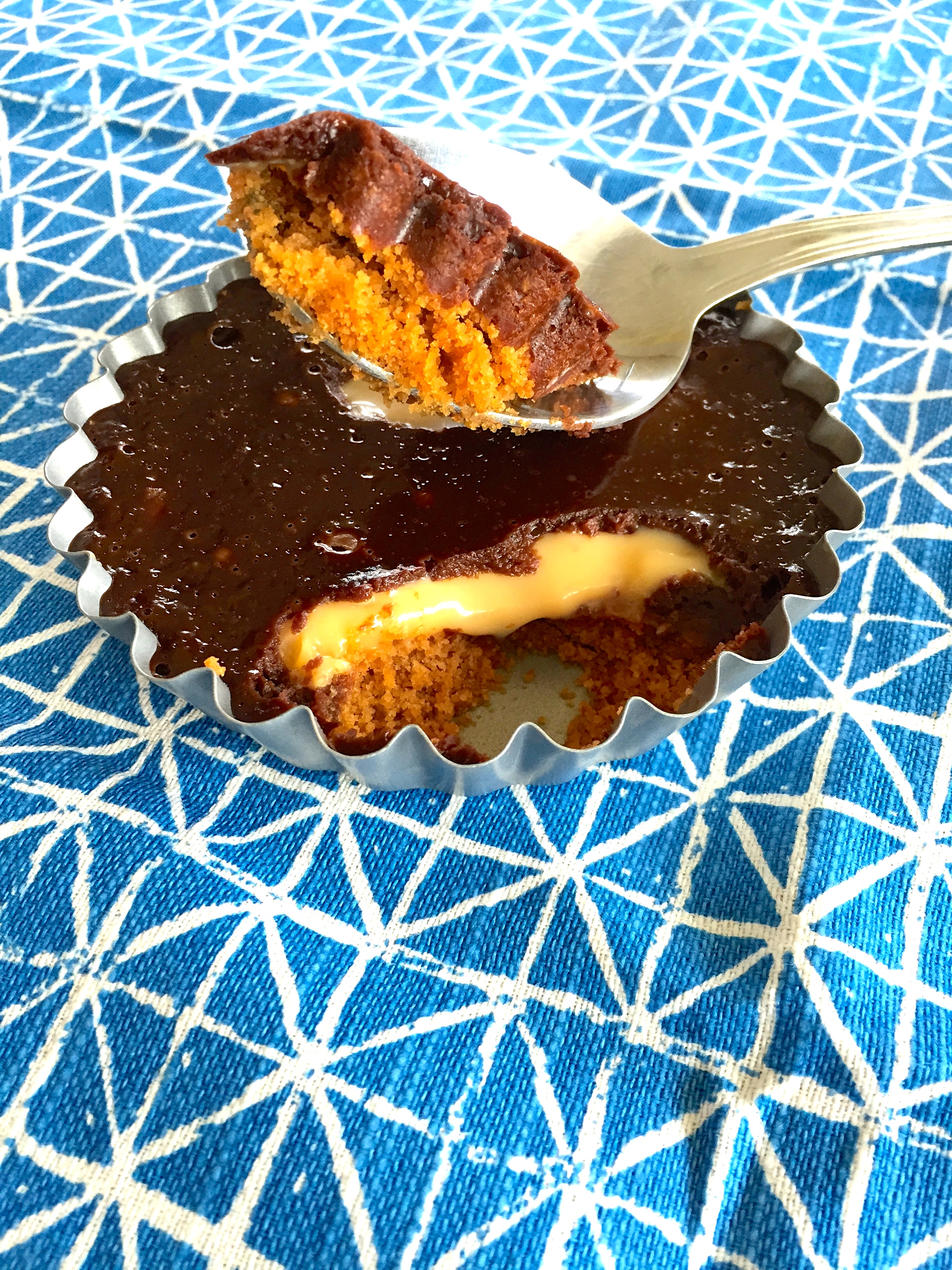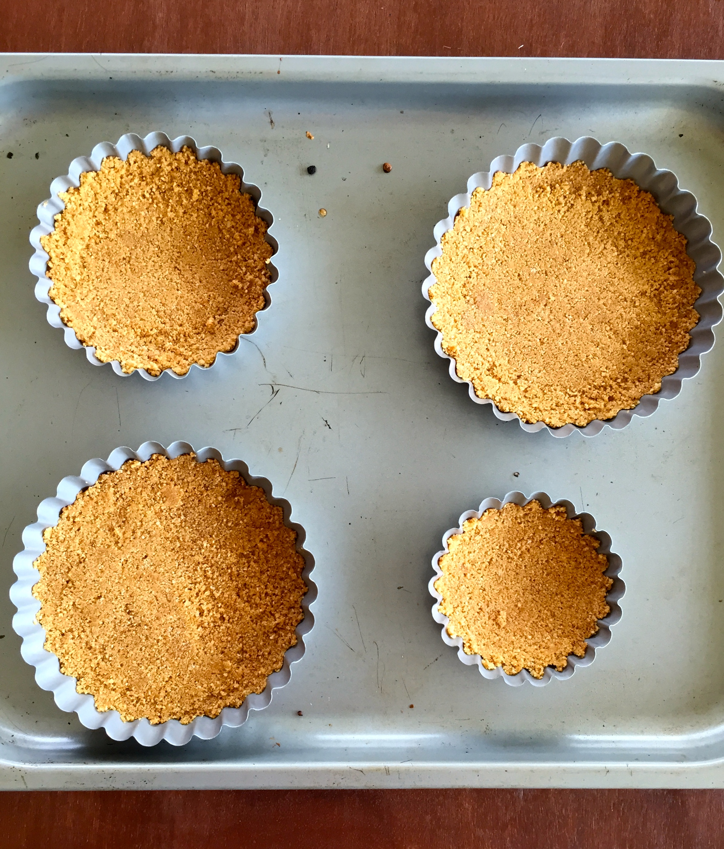 Essentially just put a bunch of butter biscuits in a food processor and added in melted butter. Pressed it to the bottom of each mini tart pan, and then added in the ducle de leche and chocolate filling till it was all finished.